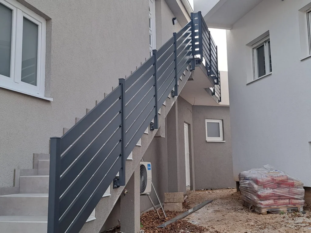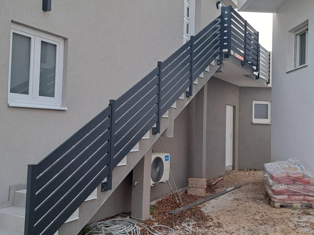 Aluminijski gelender za stubište izrađuje se po mjeri, s naglaskom na sigurnost, kvalitetu i funkcionalnost. Zahvaljujući otpornosti aluminija na vlagu, koroziju i vanjske utjecaje, gelenderi su dugotrajno rješenje pogodno za unutarnja i vanjska stubišta. Jednostavno održavanje, čvrsta konstrukcija i mogućnost prilagodbe dizajna čine aluminijski gelender praktičnim i estetski privlačnim izborom za stambene i poslovne objekte.